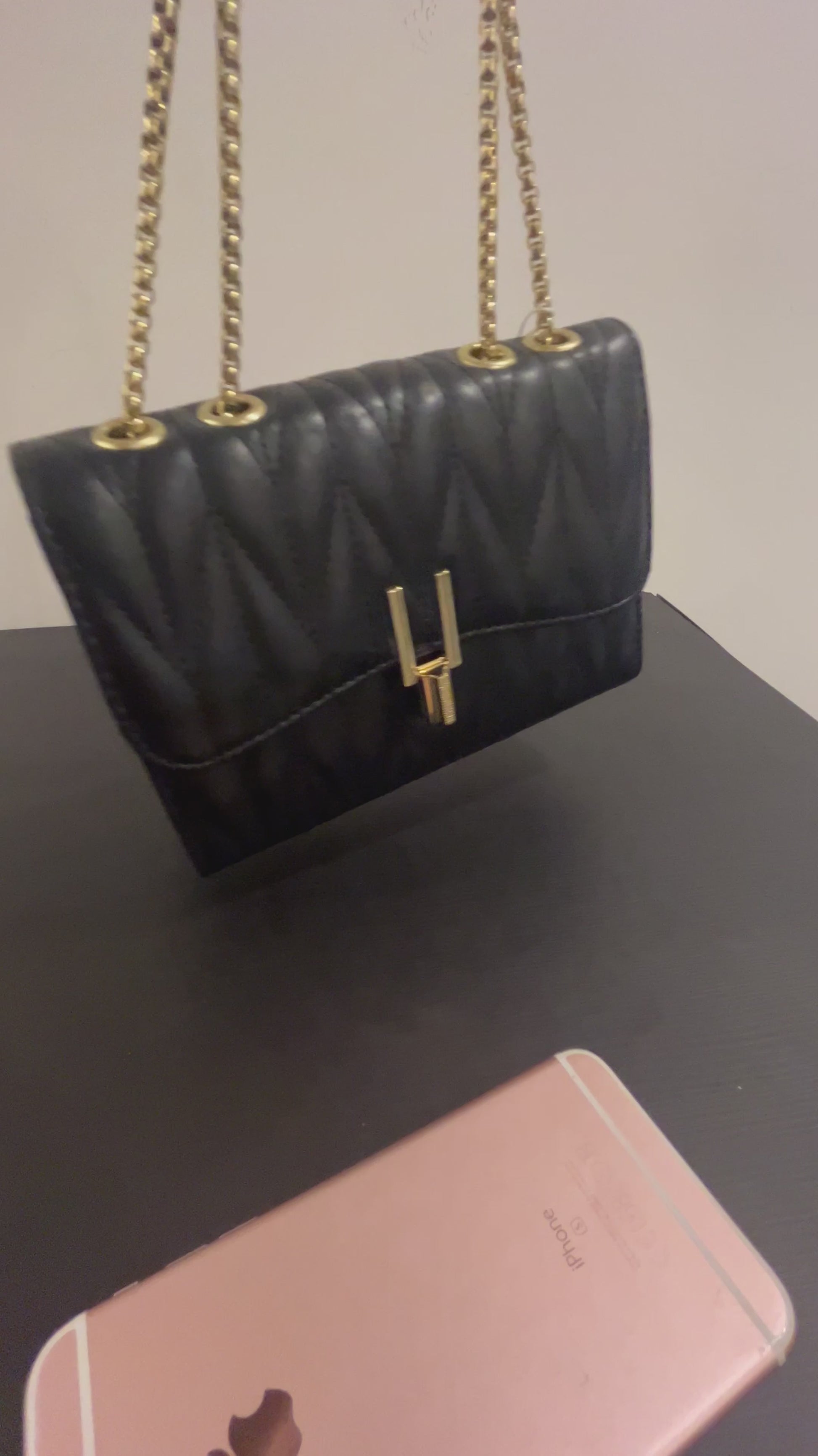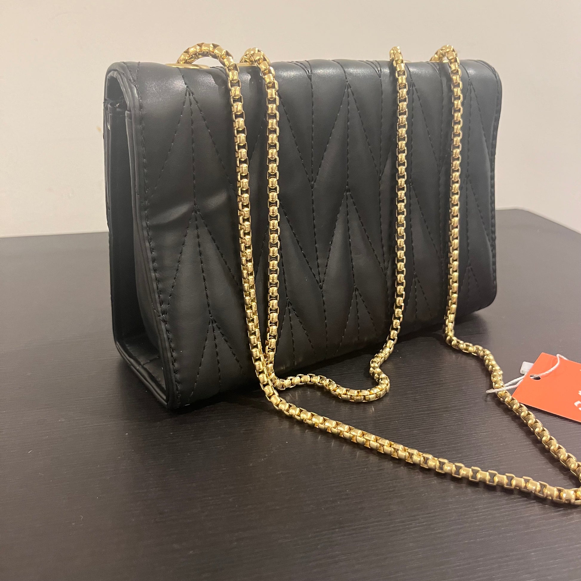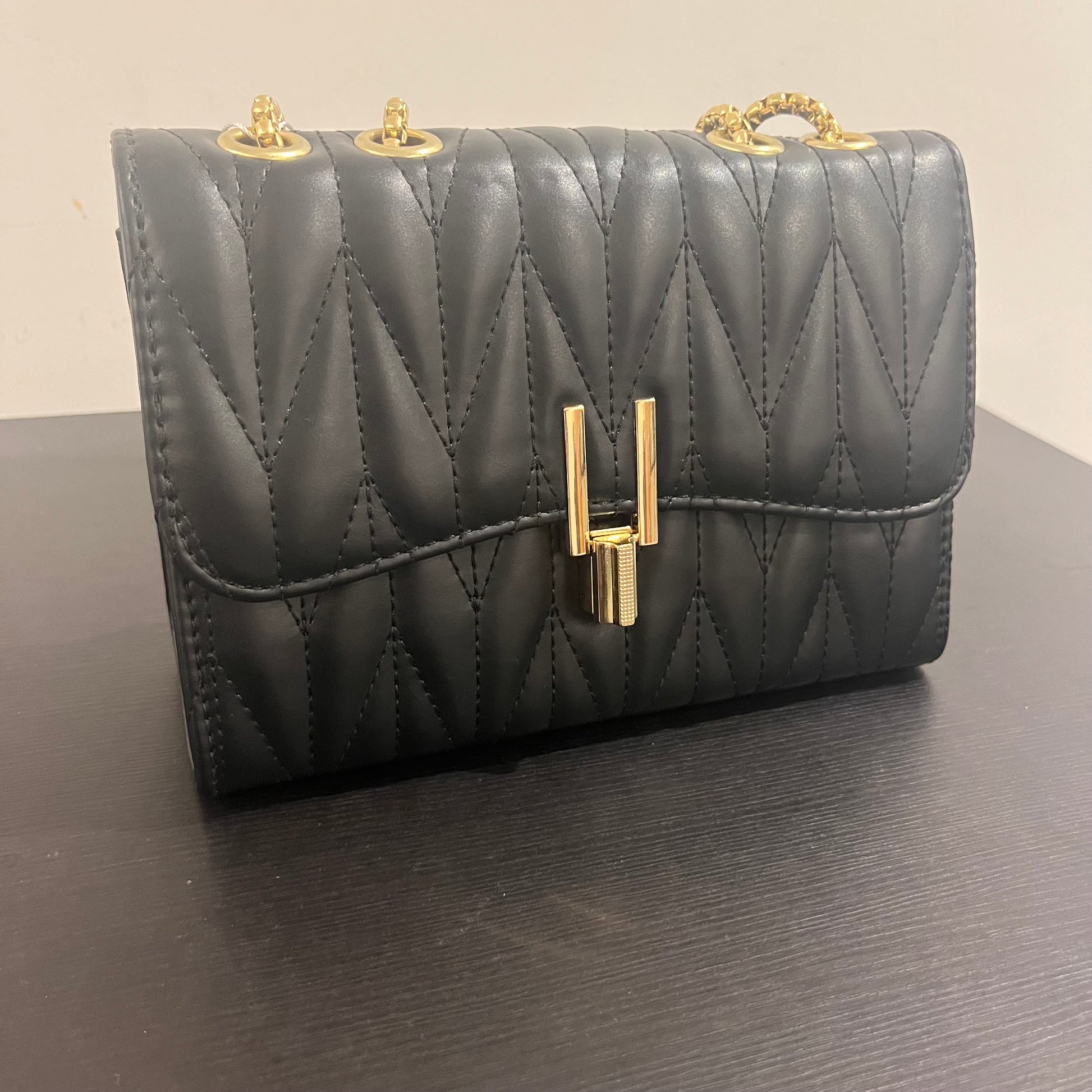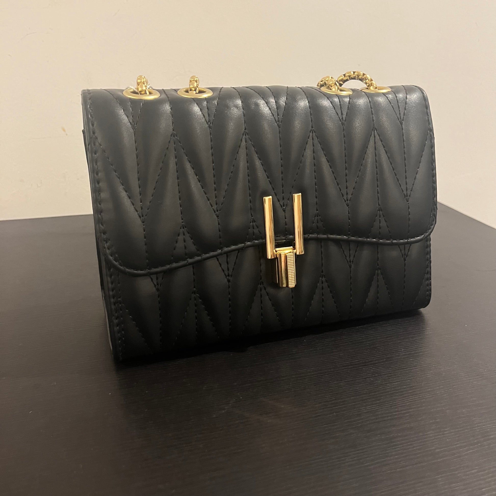 حقيبة كتف صغيرة سوداء مبطنة Quilted Black Leather Cross Body Small Shoulder Bag