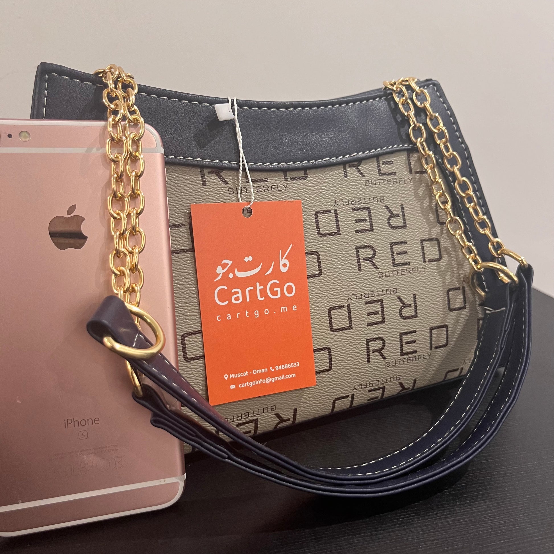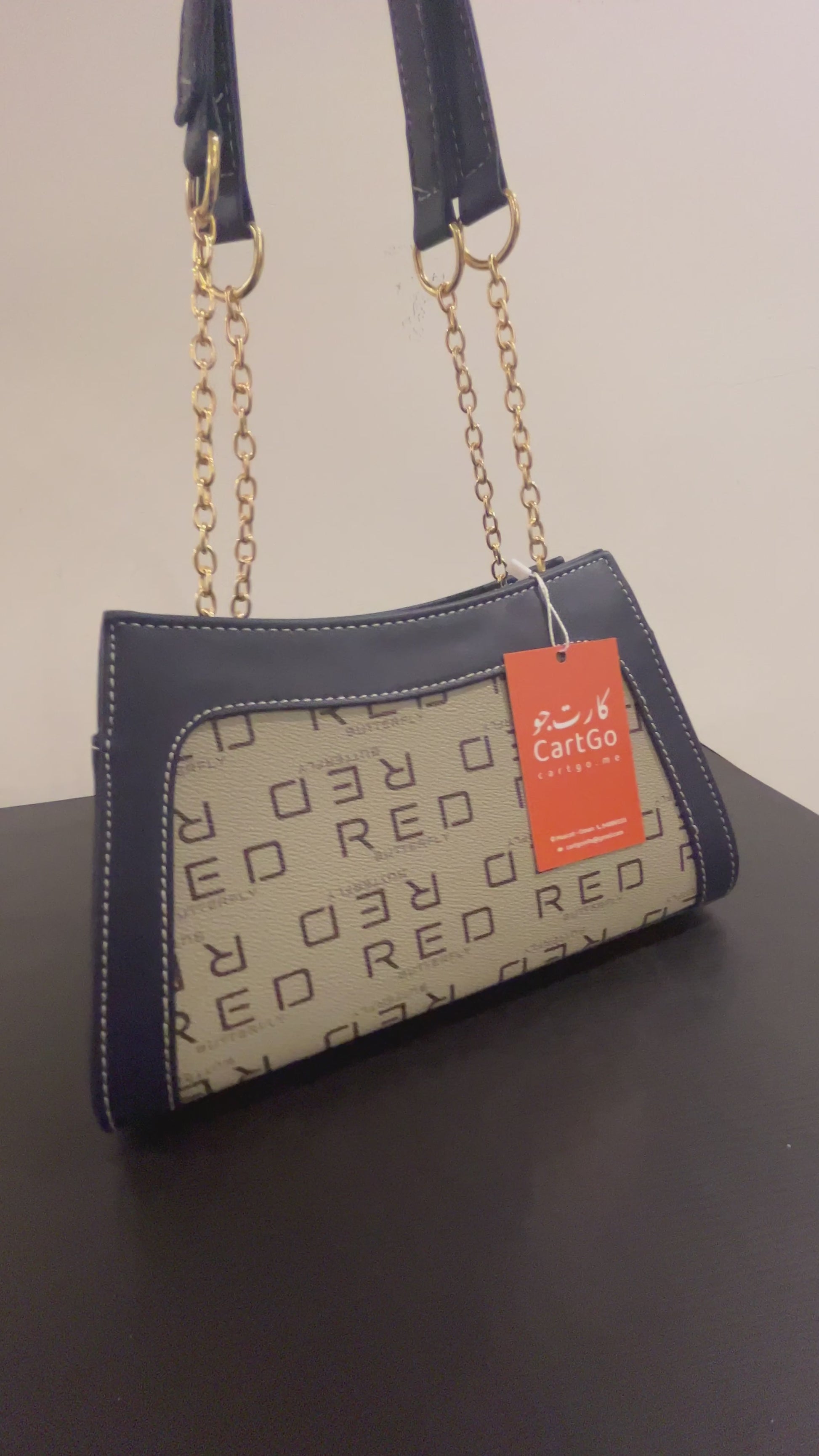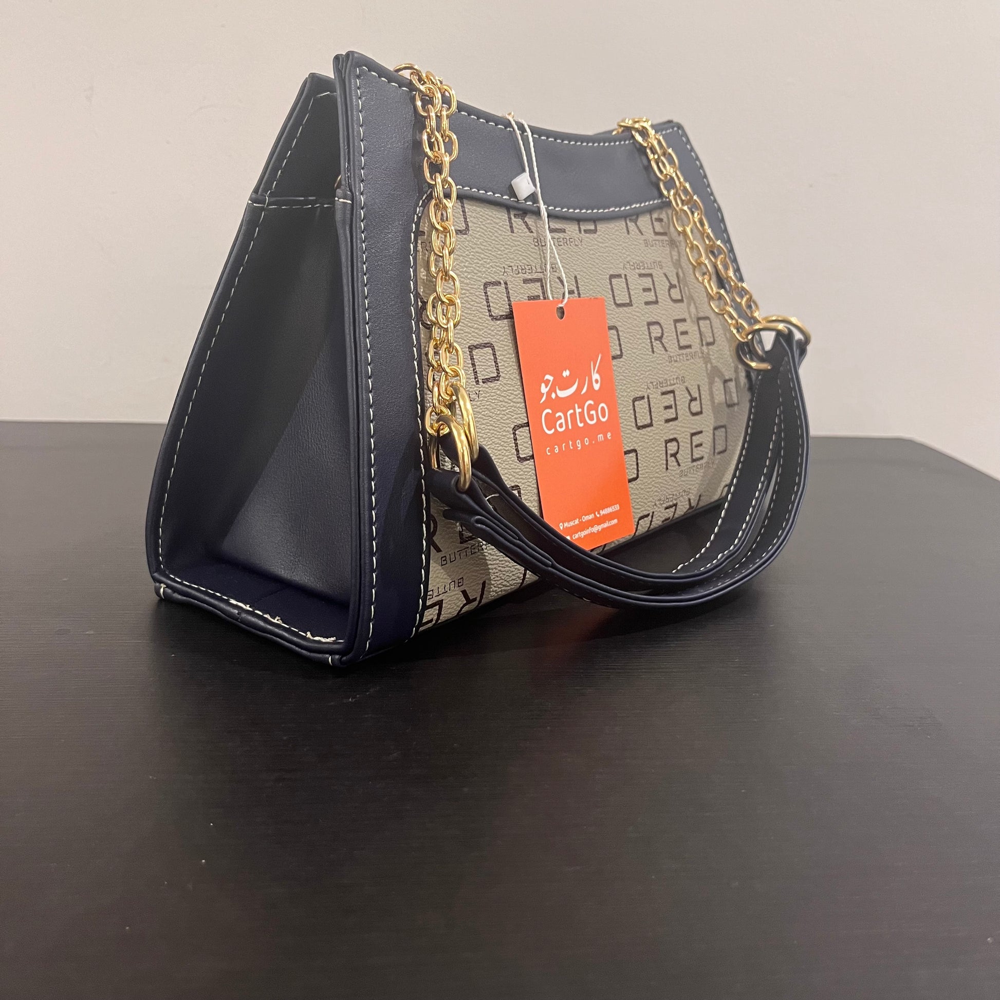 حقيبة لون كحلي بنمط أحرف Monogram patterned navy blue color handbag