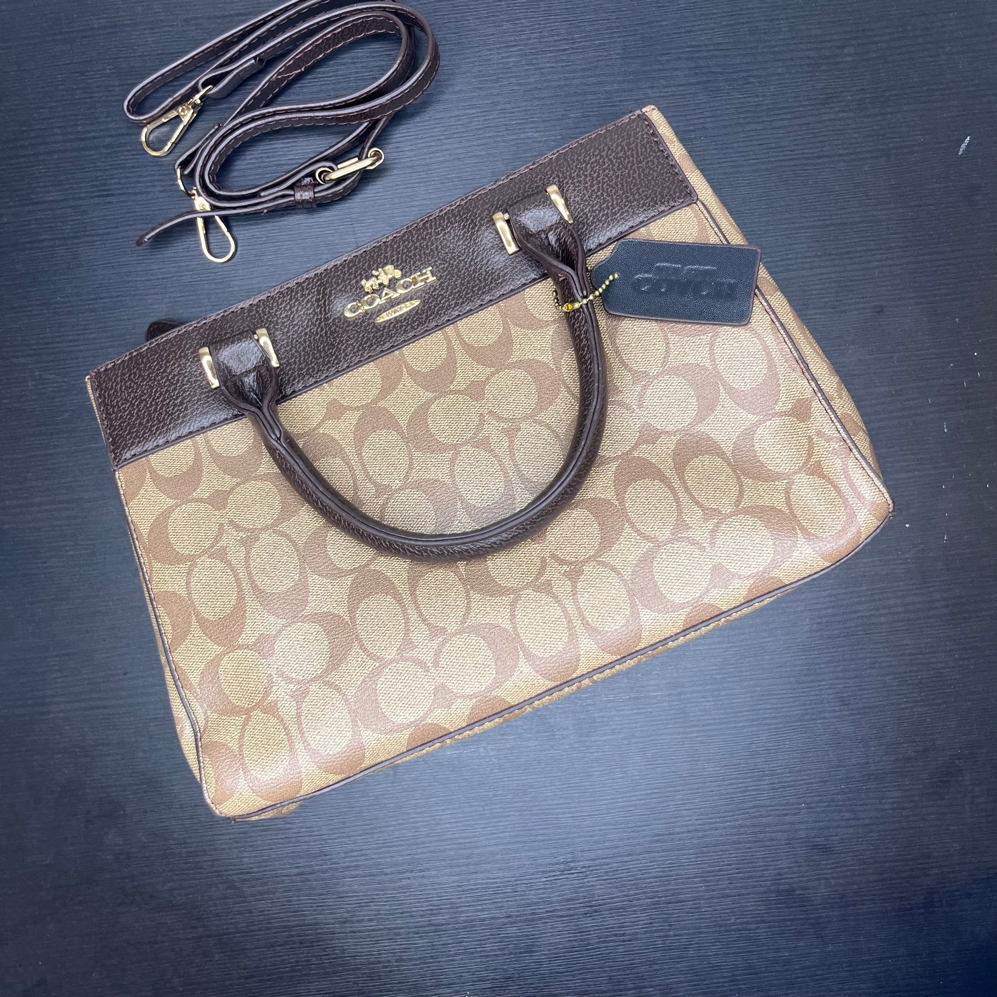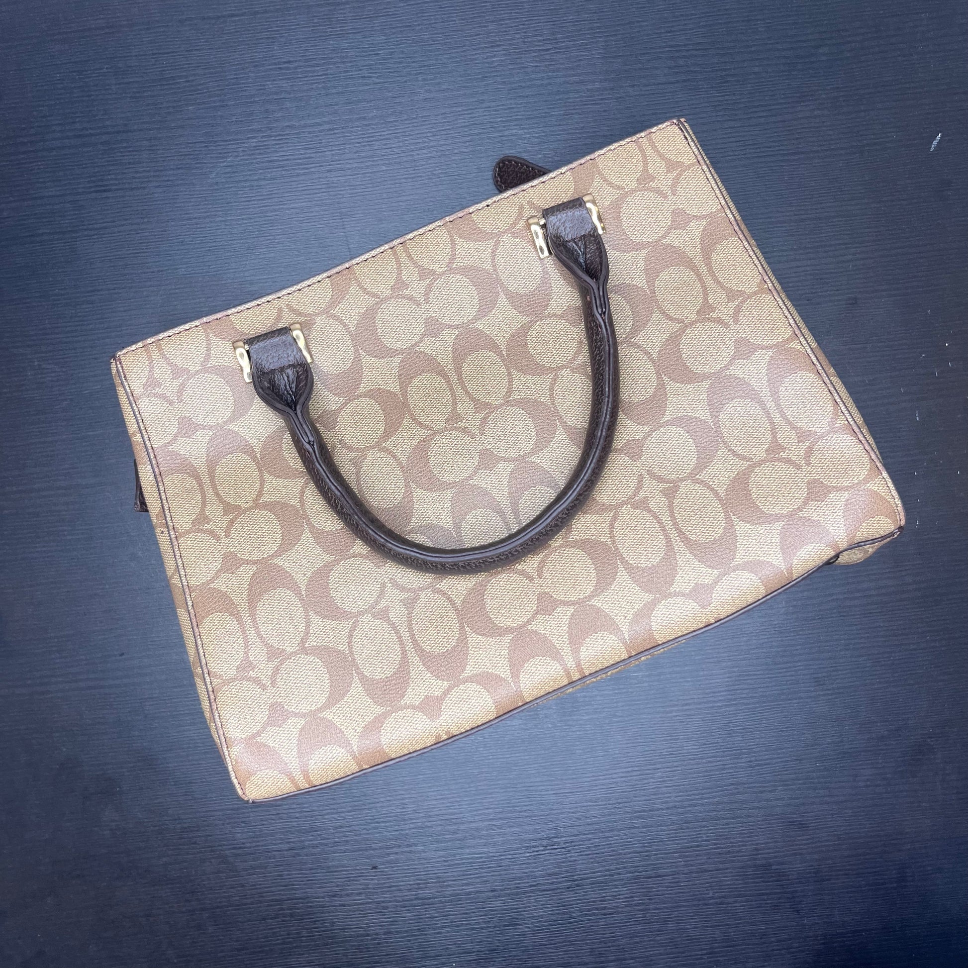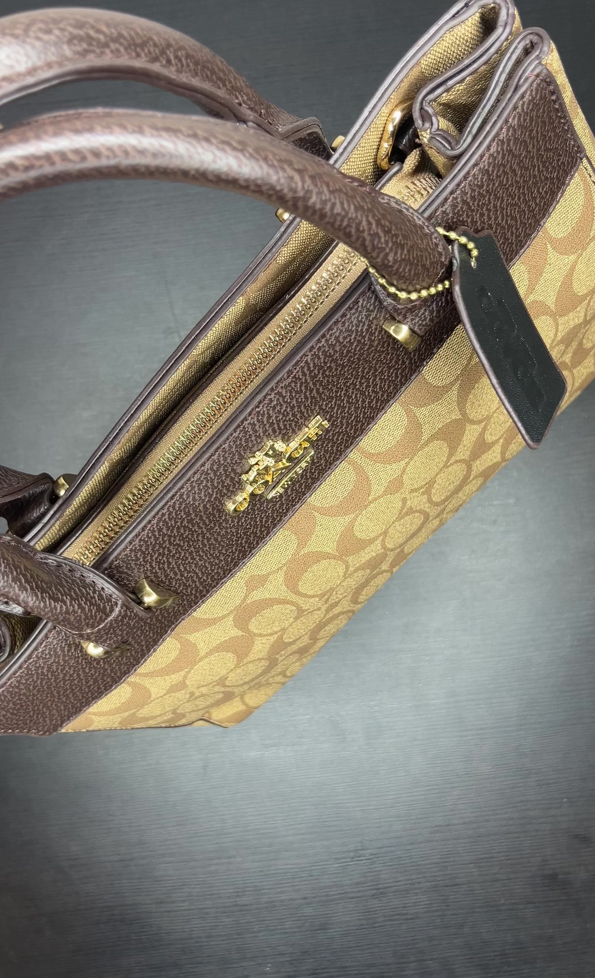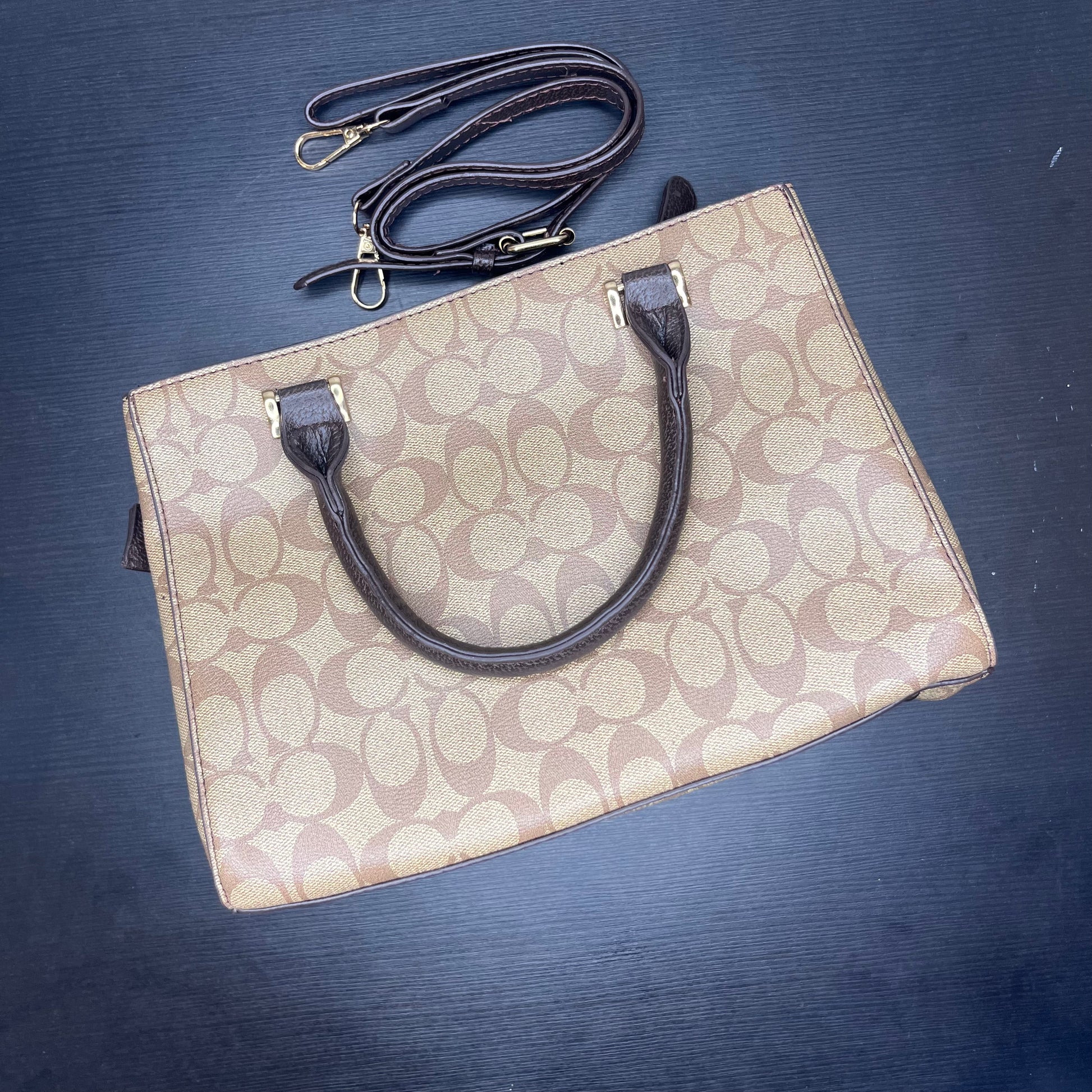 كبيرة CC شنطة بلون بني غامق ونمط Large CC patterned dark brown bag