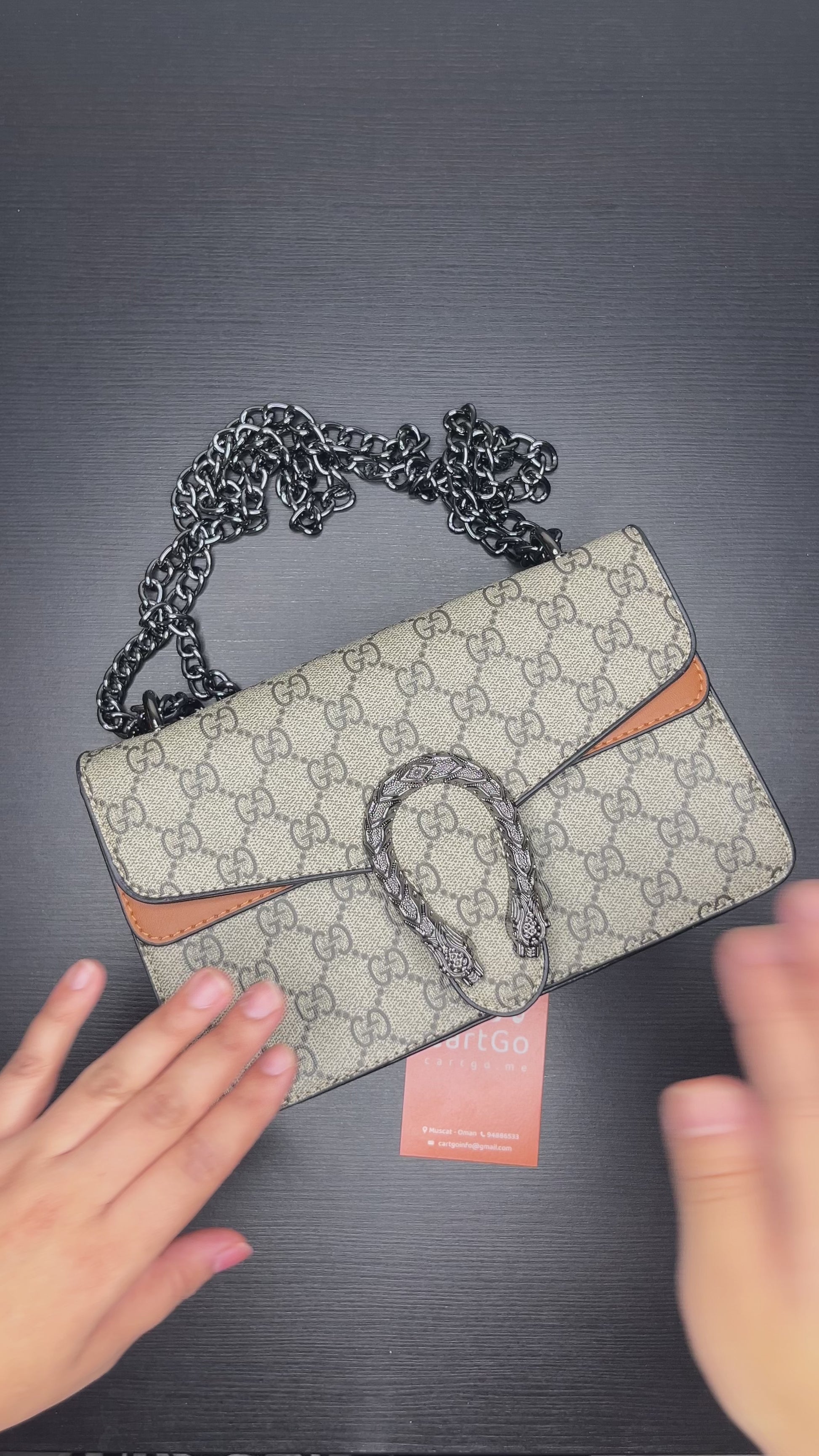 شنطة كتف بلون بني ونمط GG صغيرة Small GG pattern brown shoulder bag