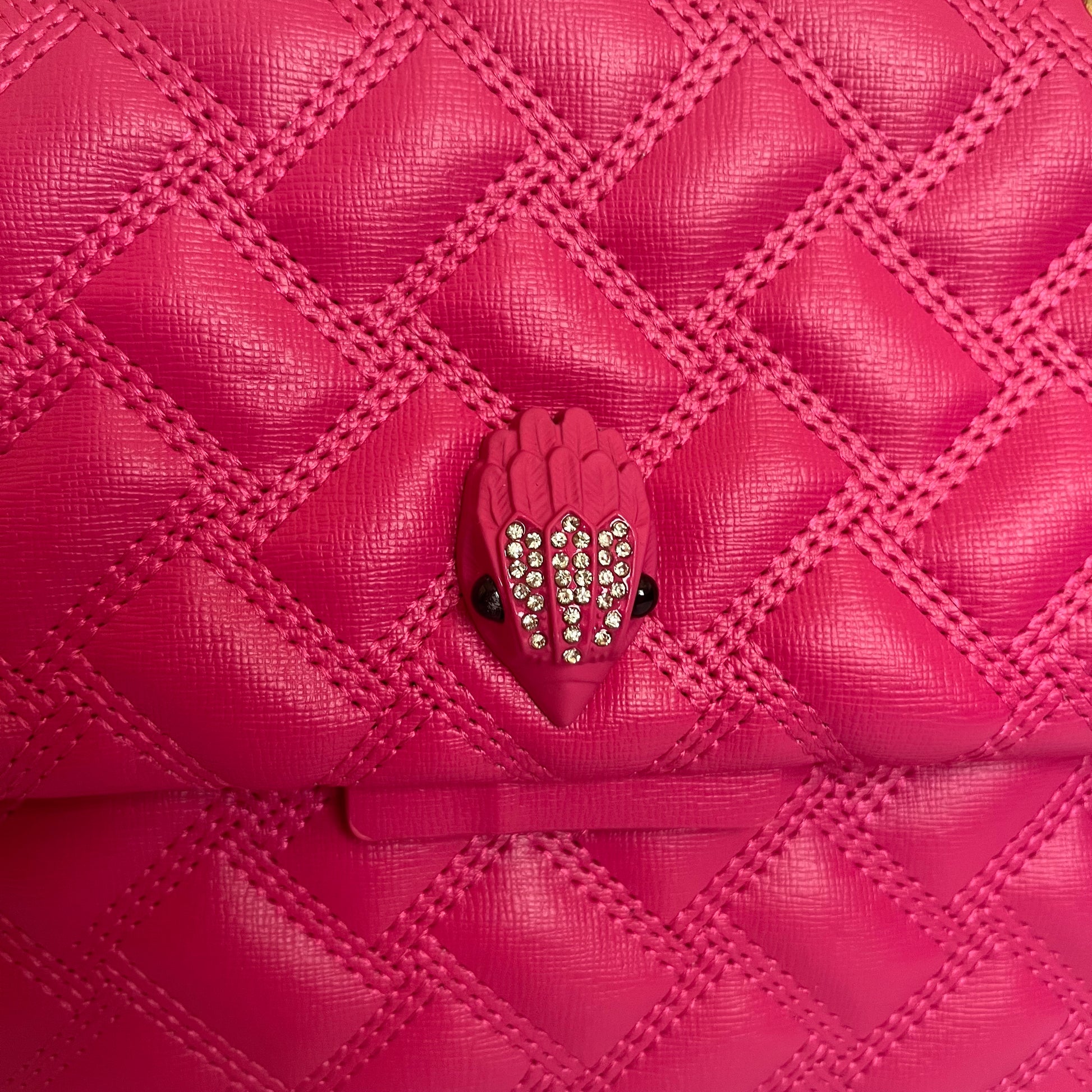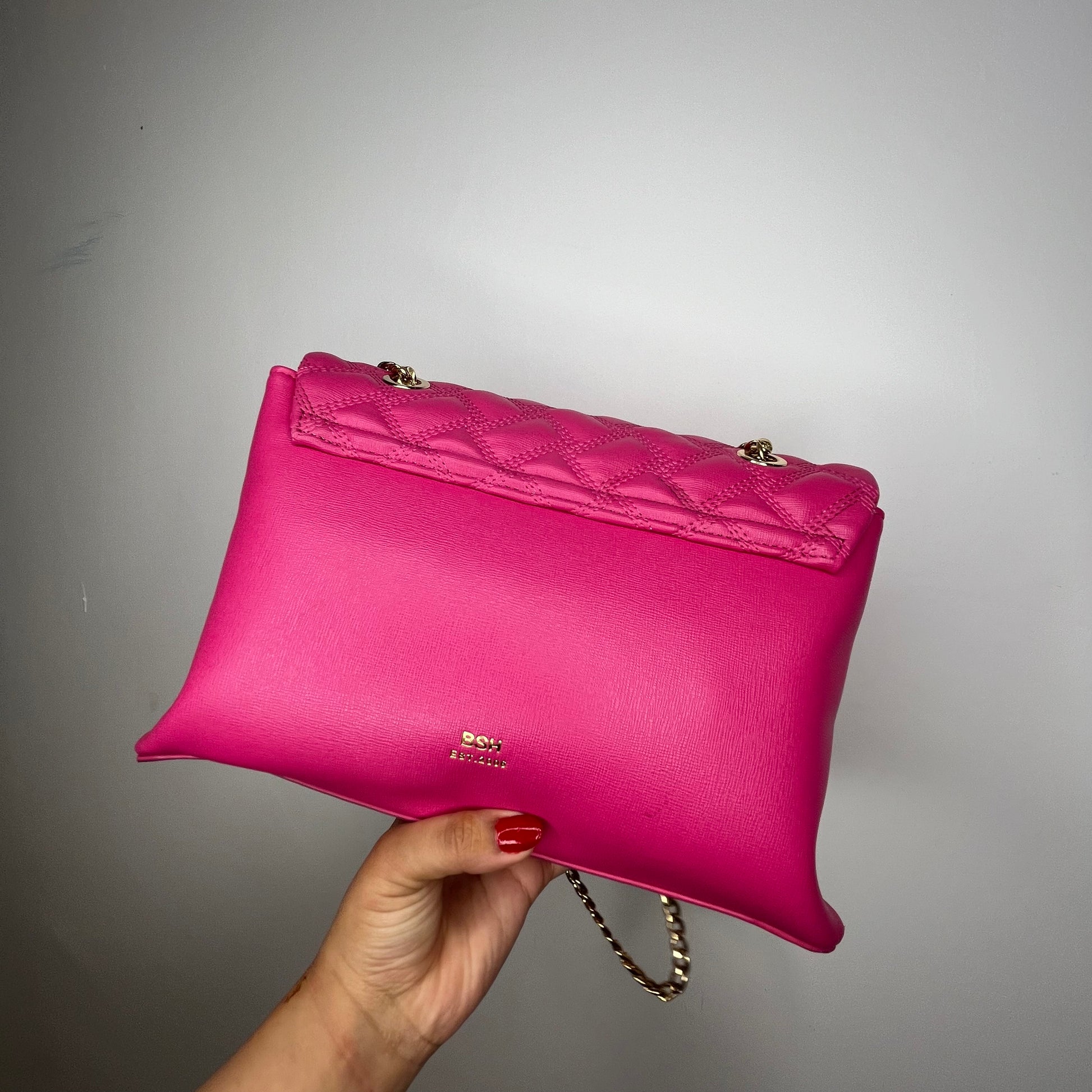 حقيبة يد وردي فوشيا مبطنة مزينة بشعار QUILTED EMBELLISHED EMBLEM FUCHSIA PINK COLOR HAND BAG