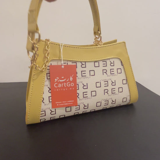 حقيبة لون خردلي بنمط أحرف Monogram patterned masterd color handbag